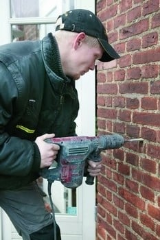 Vores isolatør kan udføre en hulmursisolering af hulmur med specialudstyr, og indblæse ISOVER granulat i hulmuren.